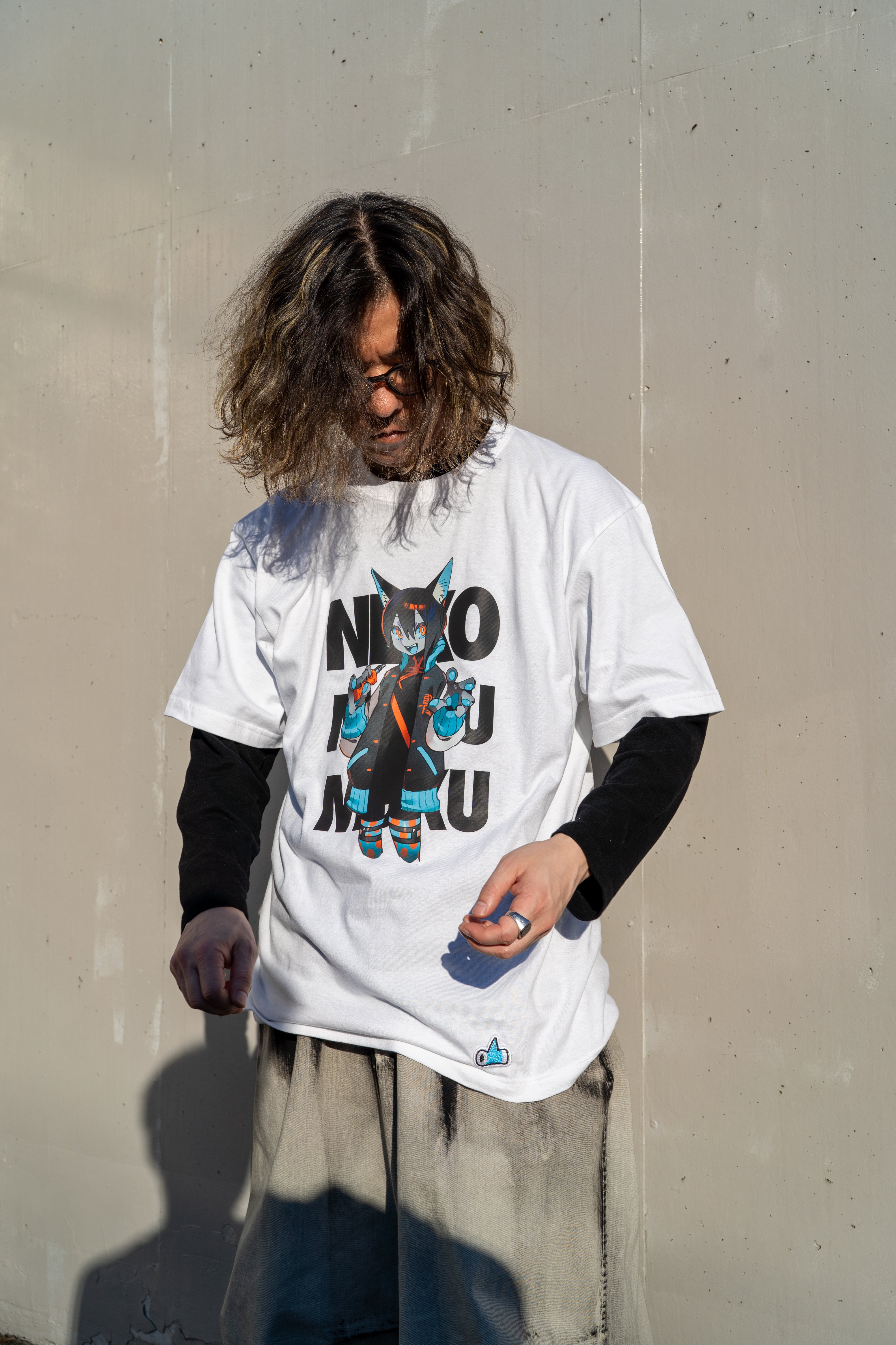[ネコモクモク]フルカラープリント&刺繍カットソー